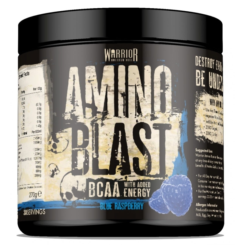 Warrior Amino Blast – gali prisidėti prie energijos kiekio bei žvalumo padidinimo, greitesnio atsistatymo po treniruotės. Papildyta Glutaminu, Taurinu, Citrulino malatu, kofeinu, žaliąja arbata.